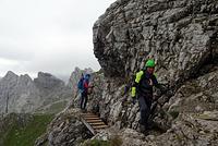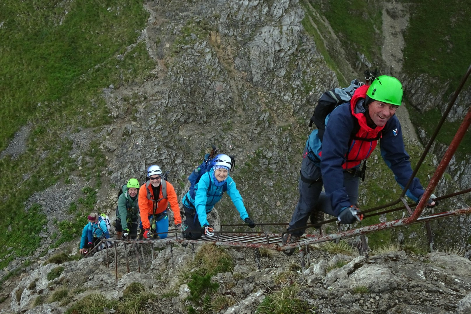 Wir hatten den ganzen Tag eine wunderschöne Aussicht auf die umliegende Bergwelt des Karwendels und der Garmischer Berge, voran der Zugspitze, entlang von Leitern und Stahlseilen. Der Abstieg ging über die Brunnsteinhütte, bei der wir natürlich eingekehrt sind, zurück über noch eine interessante Hängebrücke nach Mittenwald. Die Tour ist einfach ein abwechslungsreicher Tourenklassiker.