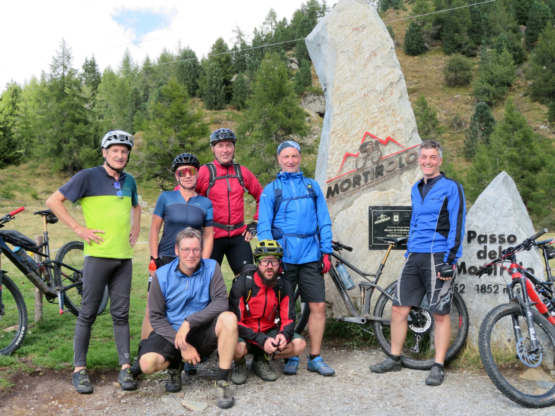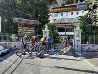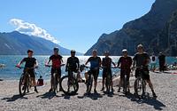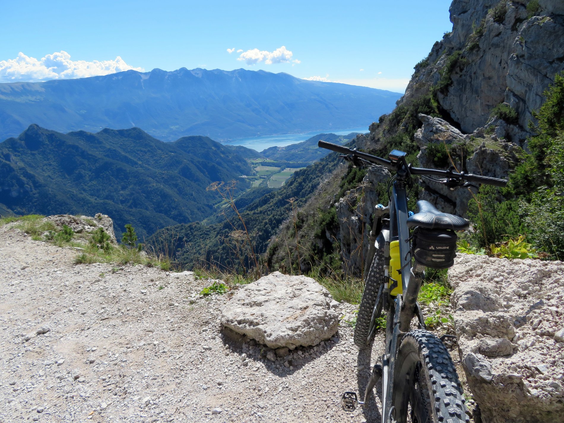 Und die 6. Etappe wartete wieder mit einem langen – 25 km nur bergauf –, aber nicht steilen Anstieg auf Asphalt zum bekannten Tremalzo auf. Waren wir auf den vorherigen Tagen recht allein unterwegs, umso voller war’s ab hier. Vom Gardasee aus werden die Mountainbiker in Scharen mit Bussen hier herauf gebracht. Bis auf ein paar kurze Gegenanstiege ging’s ab dem Scheiteltunnel von über 1800 m bis auf 65 m am Gardasee nur bergab, das überwiegend auf den alten in den Fels gehauenen Schotterpisten. Nach Mittag hatten wir unser Ziel nach insgesamt 10 300 Hm und 335 km, viel Schweiß und Schinderei aber auch viel Spaß und Freude erreicht.