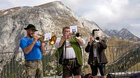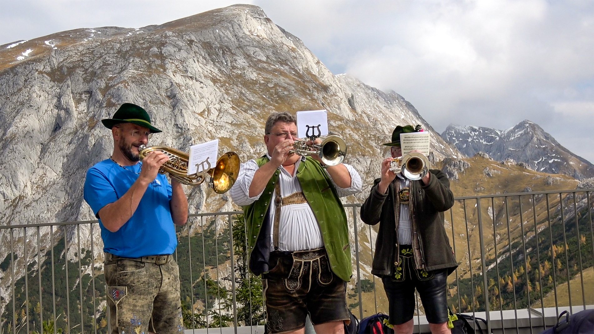 Aber was wäre ein zünftiger Hüttenabend ohne Blasmusik. Dafür zuständig waren die Brotzeitmusikanten, die bereits am frühen Nachmittag zur Freude der Touristen auf der Bergstation der Jennerbahn eine Kostprobe ihres Könnens gaben. Und am Nachmittag bis spät in die Nacht hinein war das Schneibsteinhaus und dessen Umgebung erfüllt mit den Klängen feinster bayerischer Blasmusik.
